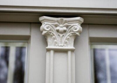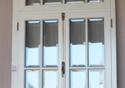 Fensterscheiben vom Kastenfenster werden meistens mit dekorativen Fenstersprossen verteilt, an der Fassadenseite kann man dekoratives Gesims oder Kapitel anbringen. Äußerer Flügel wird mit Silikon verglast, man kann aber dekorative Glasleisten benutzen. Gummidichtung wird nur an den inneren Flügel angebracht, um Kondensat zwischen den Flügeln zu vermeiden.